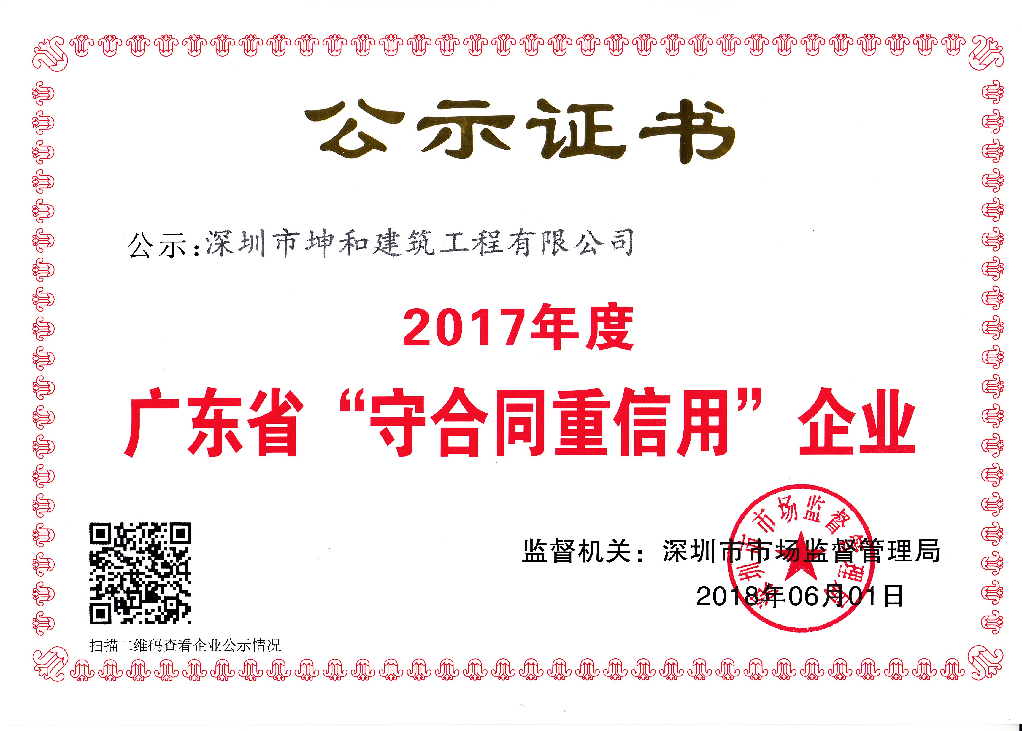 深圳市坤和建筑工程有限公司于二00五年十一月廿八日成立,經(jīng)過(guò)全體員工的共同努力,公司發(fā)展迅速,目前公司注冊(cè)資金為12010萬(wàn)元,是一支具有房屋建筑工程施工總承包一級(jí);市政公用工程施工總承包一級(jí);水利水電工程施工總承包二級(jí);地基基礎(chǔ)工程專業(yè)承包二級(jí);建筑裝修裝飾工程專業(yè)承包二級(jí);建筑機(jī)電安裝工程專業(yè)承包三級(jí);鋼結(jié)構(gòu)工程專業(yè)承包三級(jí)資質(zhì)的專業(yè)施工隊(duì)伍,并于二00六年通過(guò)了ISO9001:2008標(biāo)準(zhǔn)﹑ISO14001:2004標(biāo)準(zhǔn)﹑GT/B2800-2001標(biāo)準(zhǔn)三項(xiàng)管理體系認(rèn)證。